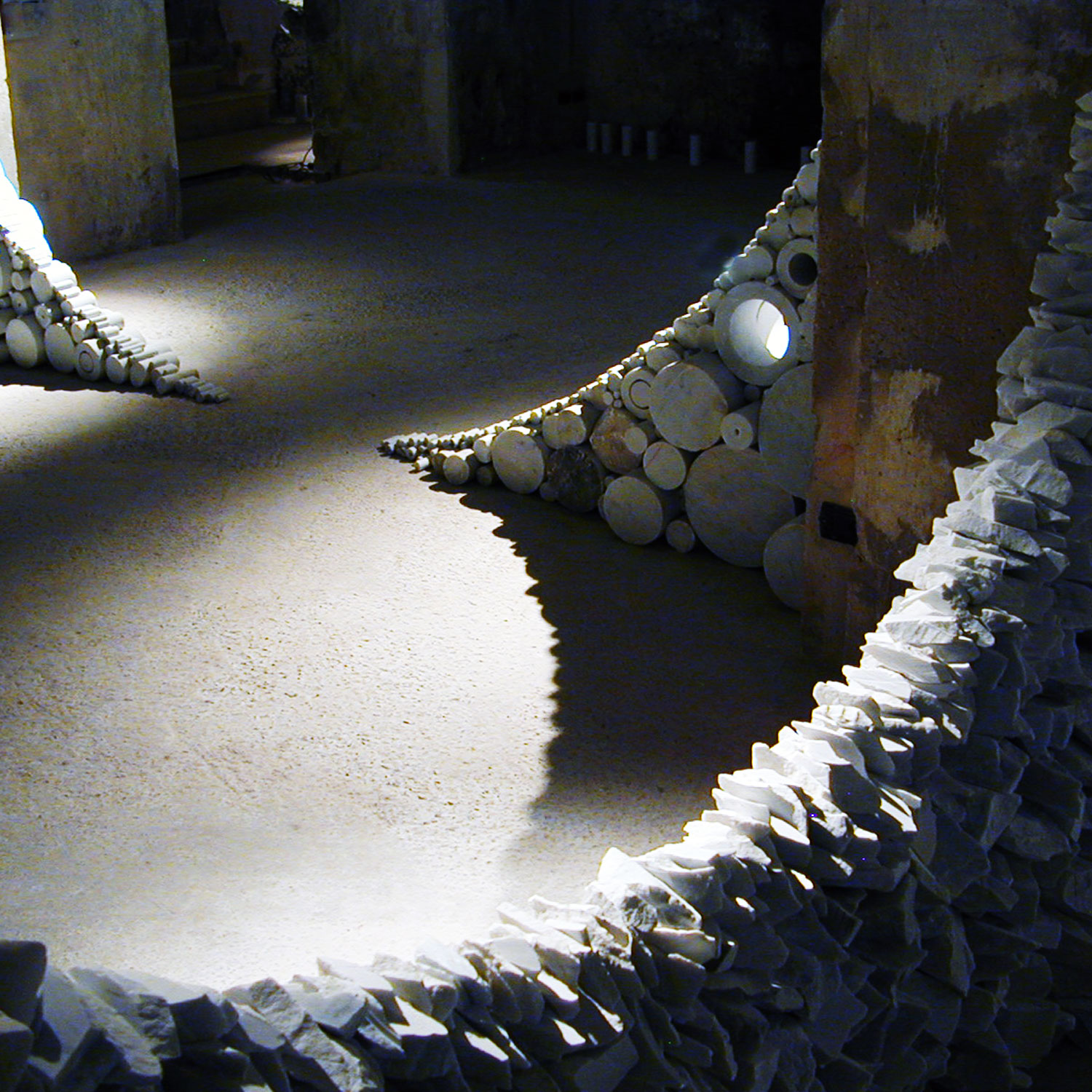 The marble working production chain produces a variety of interesting scrap materials that can be used for the creation of works of art. The peculiar sizes, shapes, and production methods give these materials personality, that makes them unique and suggests further artistic development.